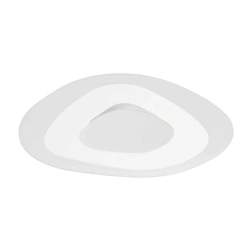 Le plafonnier LED Antigua séduit par son aspect convivial et organique et convient pour attirer l'attention dans les espaces intérieurs privés et publics. Antigua combine des sections blanches et transparentes avec un design asymétrique, pas tout à fait rond. Les LED sont placées sur le dessus du support central en métal peint en blanc. Leur lumière blanche et chaude est rayonnée jusqu'au plafond et réfléchie vers le bas à travers l'abat-jour en verre, ce qui fait briller de façon impressionnante la partie extérieure mate.