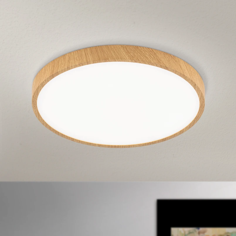Plafonnier LED Bully aspect bois, Ø 28 cm