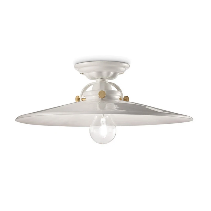Avec ses couleurs fortes et sa surface brillante, ce plafonnier C105 incarne le présent tout en rappelant un style du passé. Comme la rosace, l’abat-jour est fabriqué en céramique. Grâce à sa finition brillante, le plafonnier permet de renoncer à tout ornement superflu et les vis porteuses au fini doré permettent une utilisation dans des environnements aux styles variés.
