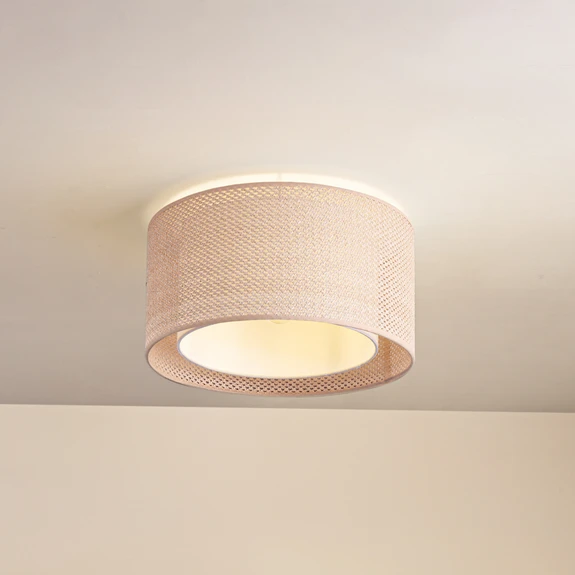 Plafonnier Soula à 1 lampe, en forme de cylindre, en plastique et textile