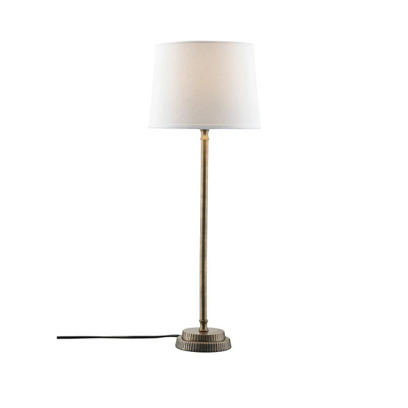 Lampe de table Kent avec abat-jour en textile Le pied de la lampe de table Kent est en métal et l'abat-jour "Sofia Franza" est en tissu. L'abat-jour a une forme conique et est équipé d'une douille E27. Le câble noir de 150 cm de long, doté d'un interrupteur et d'une fiche européenne plate, permet une installation flexible à proximité d'une prise de courant.