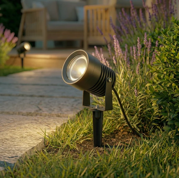 Projecteur d'extérieur LED Irina, piquet de terre, fiche, gris, métal