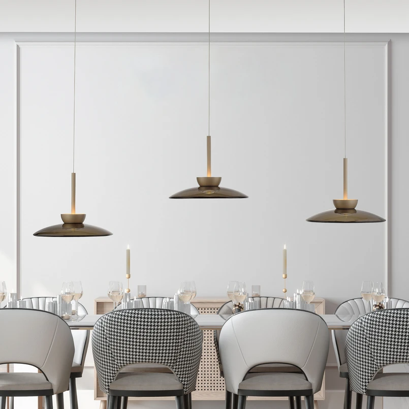 PURE Suspension LED Moon, bronze, verre/aluminium à 3 lampes