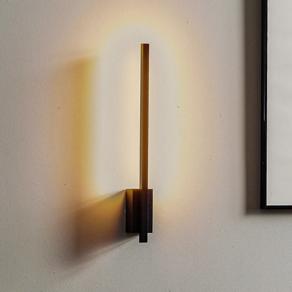 Applique murale LED verticale Tolu en noir avec surface brossée ennoblie à la main, intensité variable, CRI > 90 Cette applique murale a un aspect extraordinairement moderne et puriste avec le design slim particulier qui la caractérise. La tige lumineuse qui dépasse vers le haut est très fine et est recouverte d'une bande de LED continue à l'arrière. La finition de la surface en noir avec de fins coups de brosse est un travail manuel complexe et la couleur noire dégage une élégance froide. La lumière est agréablement indirecte et crée une ambiance confortable, de sorte que l'applique murale noire peut être utilisée comme éclairage d'accentuation le soir. L'espace de raccordement dans le caisson mural est très grand et permet ainsi une installation confortable du luminaire. Un variateur d'intensité externe en début ou en fin de phase permet de faire varier en continu les LED blanc chaud et sans scintillement et d'adapter la luminosité à ses propres idées. La lumière a en outre un indice CRI particulièrement bon et représente ainsi les couleurs de la pièce le plus fidèlement possible, même lorsqu'il n'y a plus de lumière du jour extérieure. Un produit d'éclairage de grande qualité made in Germany !