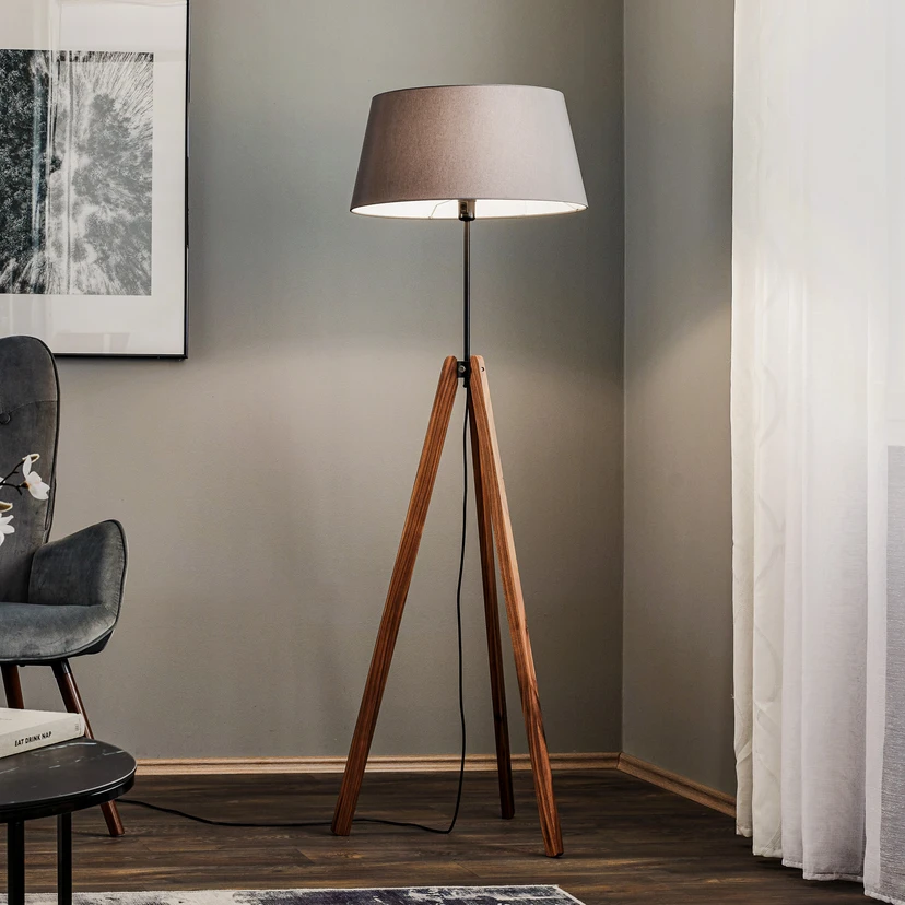 Lampe sur pied Reba gris graphite avec abat-jour en tissu et structure à trois pieds en bois de noyer, réglable en hauteur, made in Germany Reba convainc par son beau look de qualité et peut être intégrée en tant que lampadaire non seulement dans les styles d'habitat modernes, mais convient aussi tout à fait aux intérieurs scandinaves grâce à son design élégant qui associe une structure en bois massive à un abat-jour en tissu gris. La lumière est chaude et accueillante et le tissu en chintz a été appliqué sur un film de support B1 qui s'avère difficilement inflammable. La structure en bois, quant à elle, est tripode, a été minutieusement travaillée et est en noyer massif avec une finition en vernis transparent naturel de haute qualité, de sorte que le charme du matériau naturel est pleinement préservé. La tige qui mène à la douille et qui se trouve dans la structure tripode peut être déplacée vers le haut et vers le bas, ce qui permet d'adapter un peu mieux la hauteur aux besoins individuels. L'interrupteur se trouve également sur la douille, ce qui permet d'allumer et d'éteindre le lampadaire Reba en tout confort. Il s'agit d'un produit de qualité qui peut se prévaloir de la mention "made in Germany", car il a été fabriqué en Allemagne selon les normes les plus strictes et a bénéficié d'une finition parfaite.