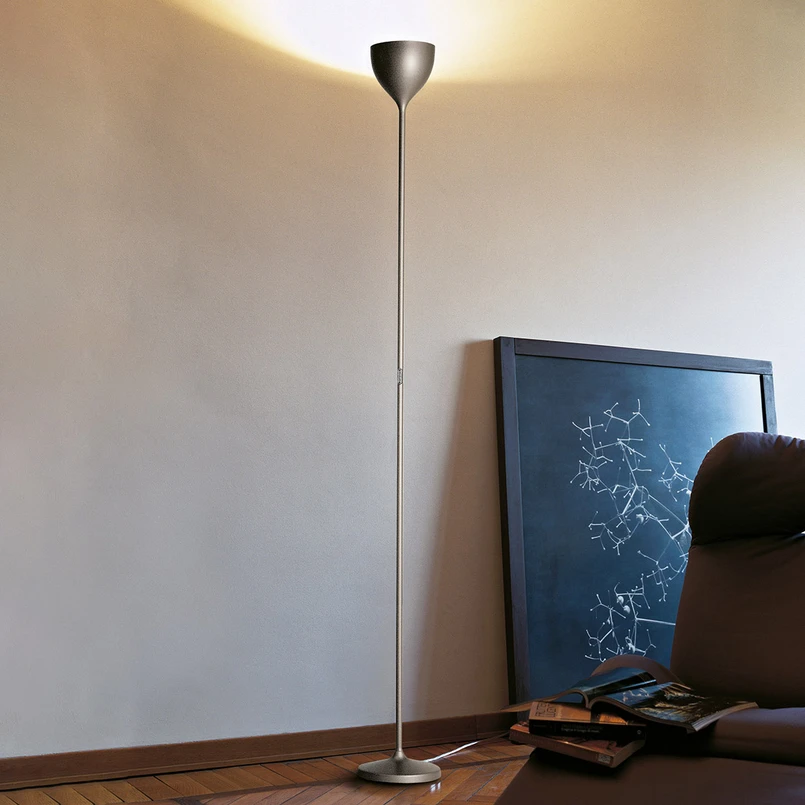 Ce lampadaire révèle immédiatement le modèle qui a inspiré les designers Giovanni Lauda et Dante Donegani pour sa conception. La lampe de sol Drink en aluminium représente une source lumineuse indirecte et élégante pour des intérieurs raffinés.