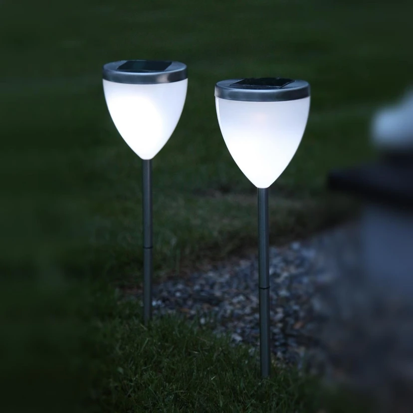 La lampe solaire LED Jannik, vendue par paire, permet de créer un éclairage agréable et décoratif dans le jardin. Le panneau solaire recharge la batterie pendant la journée et permet ainsi à la lampe solaire Jannik d'éclairer les alentours de la maison pendant la nuit. Les batteries, le panneau solaire et les piquets de terre sont inclus.