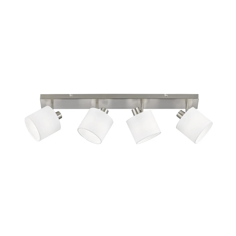 Spot pour plafond Tommy, nickel/blanc, longueur 70 cm, à 4 lampes.