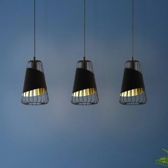 Suspension Austell, longueur 76,5 cm, noir/doré, à 3 lampes