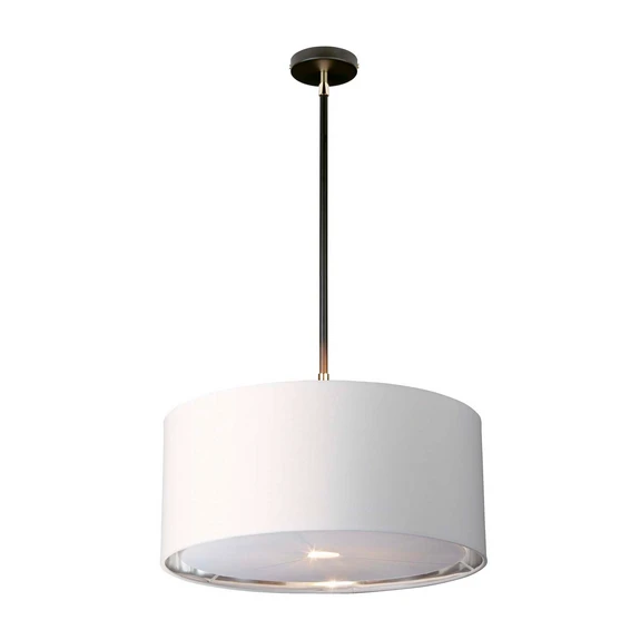 Suspension Balance avec abat-jour blanc Balance est une suspension élégante qui peut être montée sur différentes suspensions grâce aux tiges de suspension de différentes longueurs comprises dans la livraison. L'abat-jour blanc de forme cylindrique est argenté brillant à l'intérieur et pourvu d'un diffuseur vers le bas. Il en résulte un éclairage non éblouissant avec un effet chatoyant