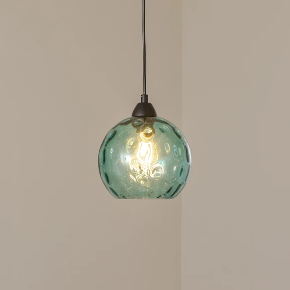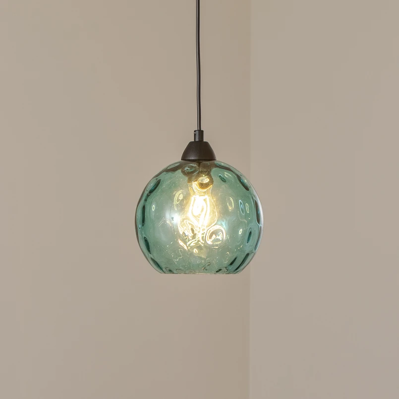 La suspension Benek combine des matériaux élégants tels que le verre et le métal pour créer une ambiance harmonieuse et moderne. Fabriquée en Europe, cette lampe séduit par son abat-jour en verre teinté, presque sphérique, à la structure ondulée et à la finition haut de gamme. Elle est idéale pour différents espaces de vie tels que la salle à manger, le salon, la cuisine et la chambre à coucher, et apporte de la couleur à la pièce.