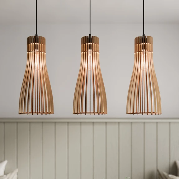 La suspension Bottle à 3 lampes allie charme rustique et éclairage fonctionnel. Fabriquée en acier et en bois de haute qualité, cette lampe s'intègre parfaitement dans un style rustique ou cottage. La combinaison du bois clair et de la finition noire confère à chaque salon ou salle à manger une atmosphère chaleureuse et accueillante. La construction à 3 lampes assure un éclairage homogène de la pièce et crée ainsi un environnement agréable pour des soirées conviviales ou des moments de détente.