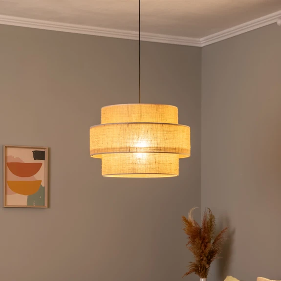 Suspension Calisto avec abat-jour cylindrique en jute brun naturel La suspension Calisto est dotée d'un abat-jour cylindrique composé de deux sphères de diamètres différents. Leur textile en jute confère à la suspension un caractère confortable et naturel.