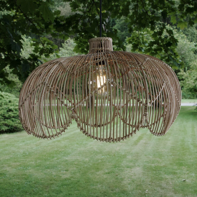 La suspension d'extérieur Belle allie matériaux naturels et design fonctionnel. Fabriquée en rotin de haute qualité dans une teinte bois clair, elle s'intègre harmonieusement dans n'importe quel environnement et crée une atmosphère chaleureuse et accueillante. Grâce à sa protection IP44, elle est idéale pour une utilisation sur les terrasses et les balcons et offre une protection fiable contre les projections d'eau.