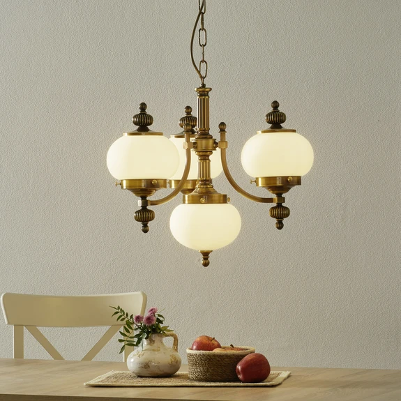 Lustre DELIA version 4 lumières à surface en laiton ancien ombré