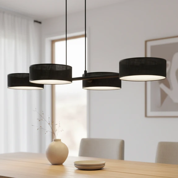 La suspension Drumz 4 allie un design moderne à des matériaux haut de gamme tels que l'acier et le tissu. Ses lignes épurées et sa couleur noire intemporelle en font un élément décoratif élégant qui attire le regard dans n'importe quel salon ou salle à manger. Grâce à sa conception bien pensée, elle s'intègre harmonieusement dans différents styles d'intérieur et crée une atmosphère agréable.
