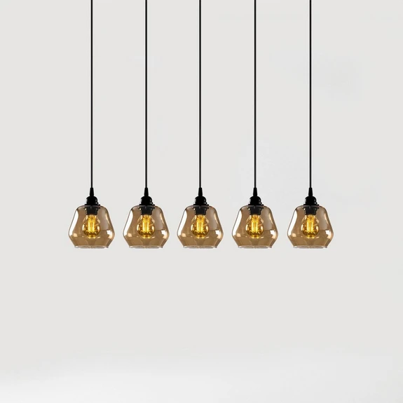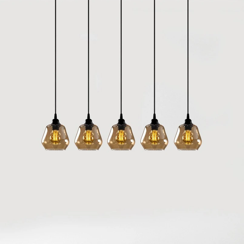 Suspension Gold 033, verre transparent doré, à 5 lampes linéaire