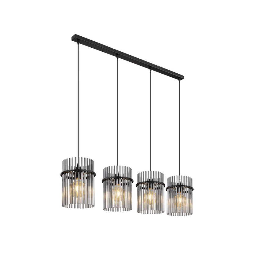 Suspension Gorley, longueur 110 cm, gris fumé, 4 lampes, verre