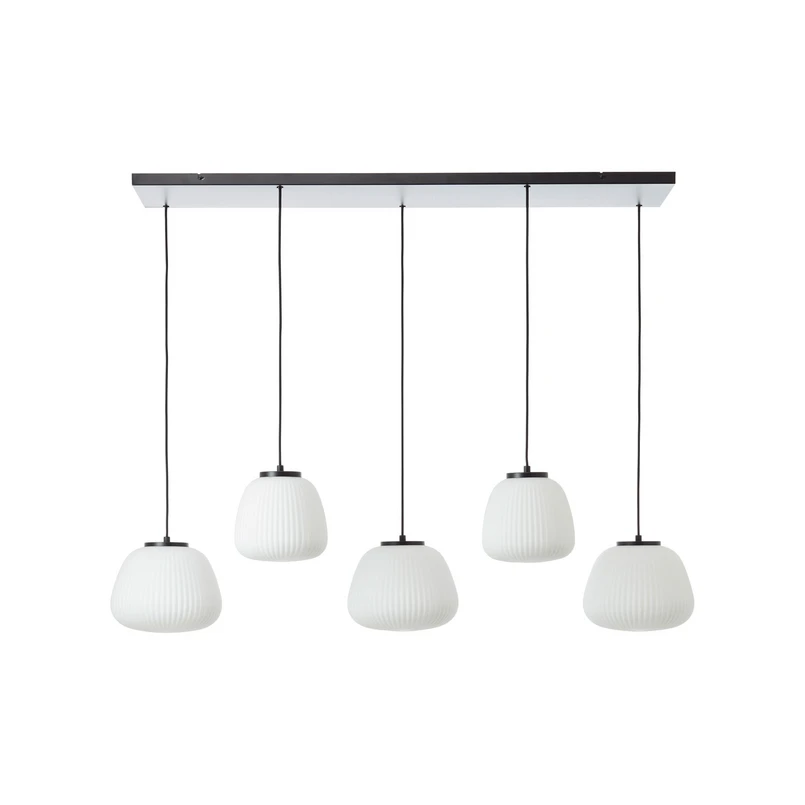 Suspension Kaizen, longueur 125 cm, opale, 5 lampes, métal