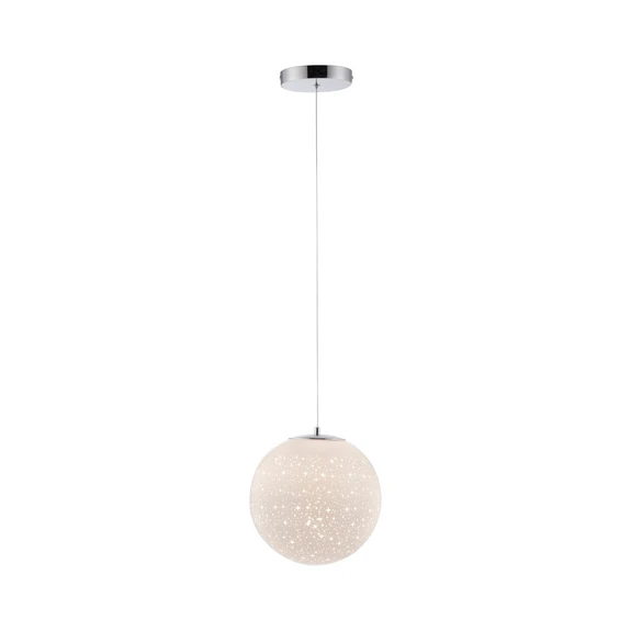 Suspension LED Bolo avec abat-jour sphérique en verreLa suspension LED Bolo est un véritable point de mire dans chaque pièce. L'abat-jour sphérique blanc en verre combiné à la structure en fer chromé brillant confère à la lampe une élégance intemporelle. La lumière blanc chaud rayonne tout autour et crée une atmosphère agréable. Particulièrement pratique : la suspension peut être raccourcie lors du montage, ce qui permet d'adapter parfaitement la lampe aux besoins individuels.- avec un effet esthétique de ciel étoilé