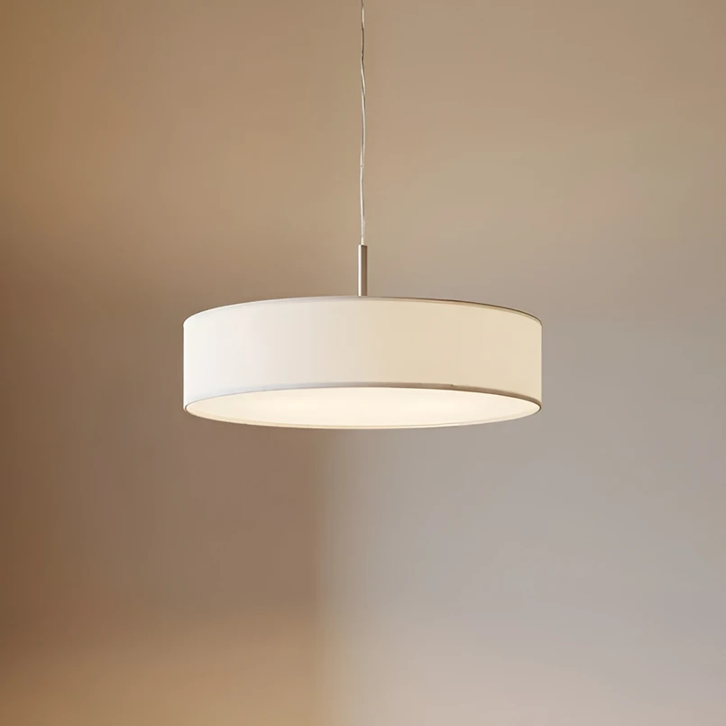 Suspension cylindrique Sebatin en tissu blanc Un abat-jour en tissu blanc de forme cylindrique constitue la suspension Sebatin, qui peut être utilisée de manière quasiment universelle, mais qui convient particulièrement bien aux intérieurs modernes, où la devise est que le moins peut être le plus. L'abat-jour est également recouvert d'un tissu sur sa face inférieure, ce qui permet de garantir une répartition aussi uniforme que possible de la lumière. Il est équipé de trois ampoules E27 qui assurent une luminosité élevée. Ainsi, Sebatin en tant que suspension est bien sûr un atout pour chaque pièce, mais elle convient parfaitement au-dessus d'une table de salle à manger, où la lumière doit être à la fois claire et confortable.