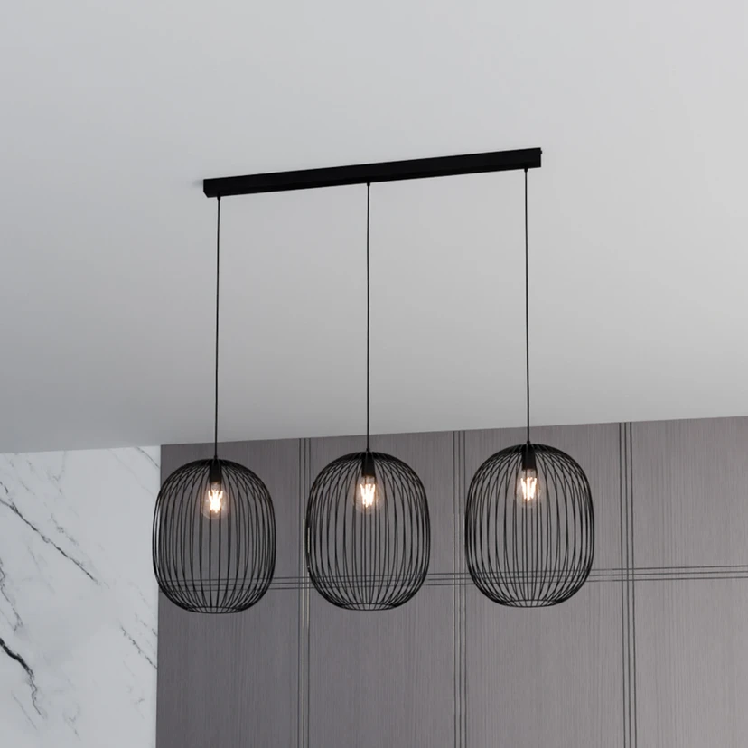 La suspension Maia impressionne par son design en forme de cage et s'intègre parfaitement dans n'importe quel salon. Fabriquée en acier de haute qualité et dans un noir élégant, elle apporte une touche stylée et confère à la pièce une atmosphère particulière. La construction à 3 lampes assure un éclairage homogène et crée un jeu de lumière harmonieux qui peut avoir un effet apaisant et inspirant.