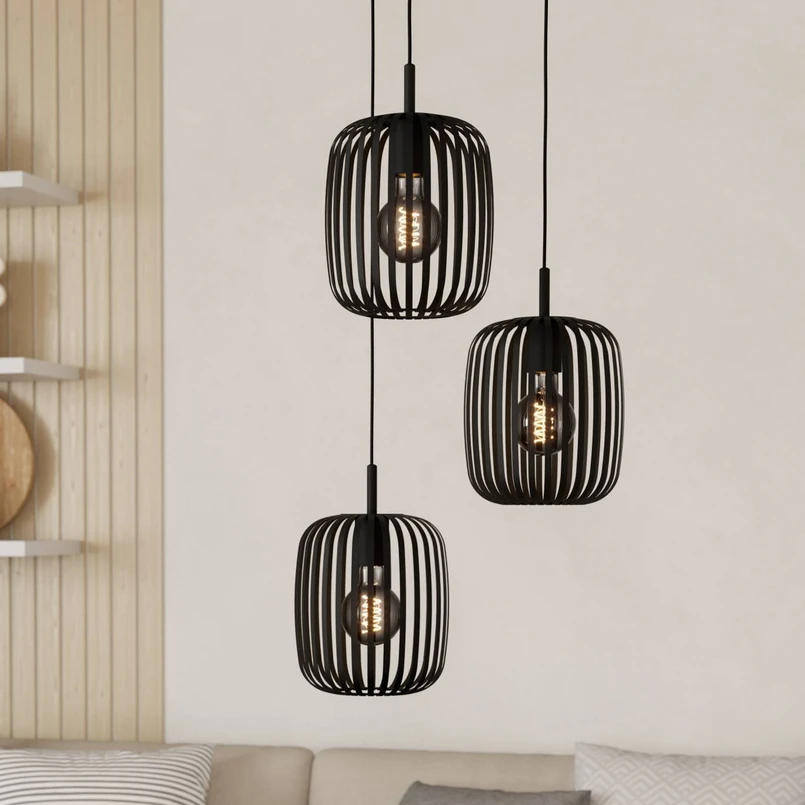 Suspension Romazzina, Ø 46 cm, noir, 3 lampes, acier