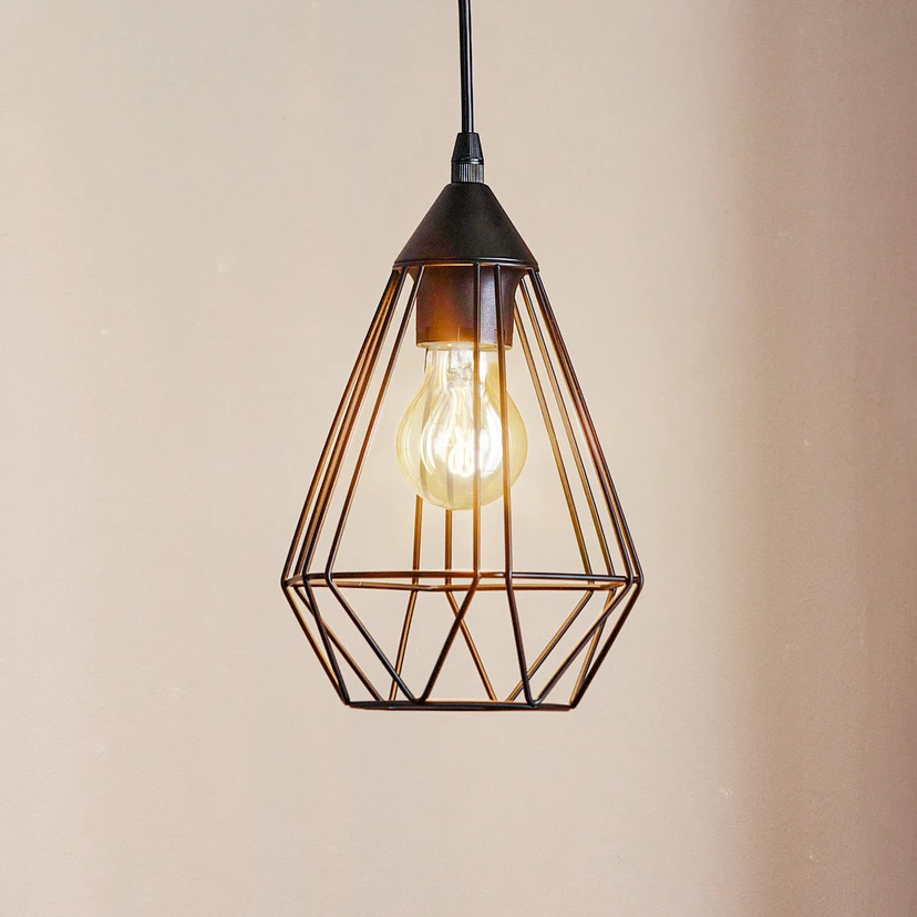 La suspension Tarbes noire affiche un design vintage. Son abat-jour affiche un design ouvert, composé d’entretoises métalliques, de sorte que l’ampoule est visible de l'extérieur et peut rayonner librement dans toutes les directions sans qu'un abat-jour n'atténue la lumière. L'aspect décoratif du luminaire est complet quand on utilise une ampoule transparente à technologie filament.
