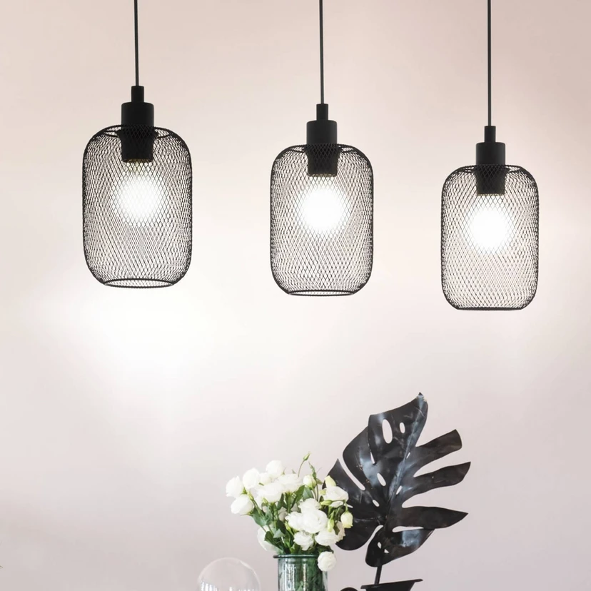 Suspension Wrington, longueur 74 cm, noir, 3 lampes, acier