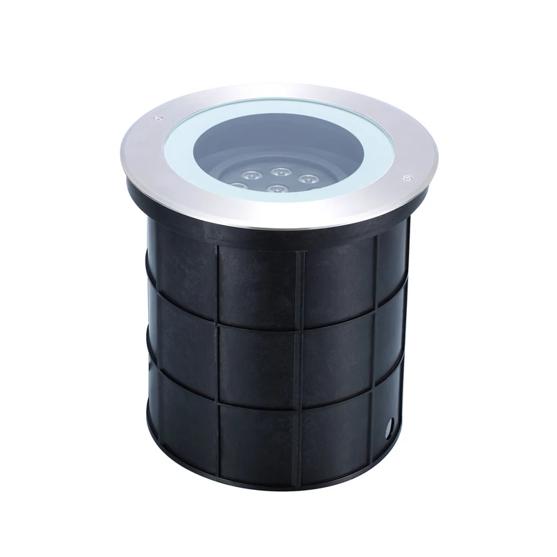 Le luminaire encastré dans le sol Interrata, de forme ronde, avec un module d'éclairage réglable de 0° à 30°, est conçu pour résister à des charges allant jusqu'à 2000 kg (20 kN). Il est équipé d'un câble volant de 2 m de long (3x1 mm²) et d'un tube d'encastrement, d'un boîtier en aluminium avec une bague décorative en acier inoxydable (SS316) et d'un diffuseur en verre transparent.