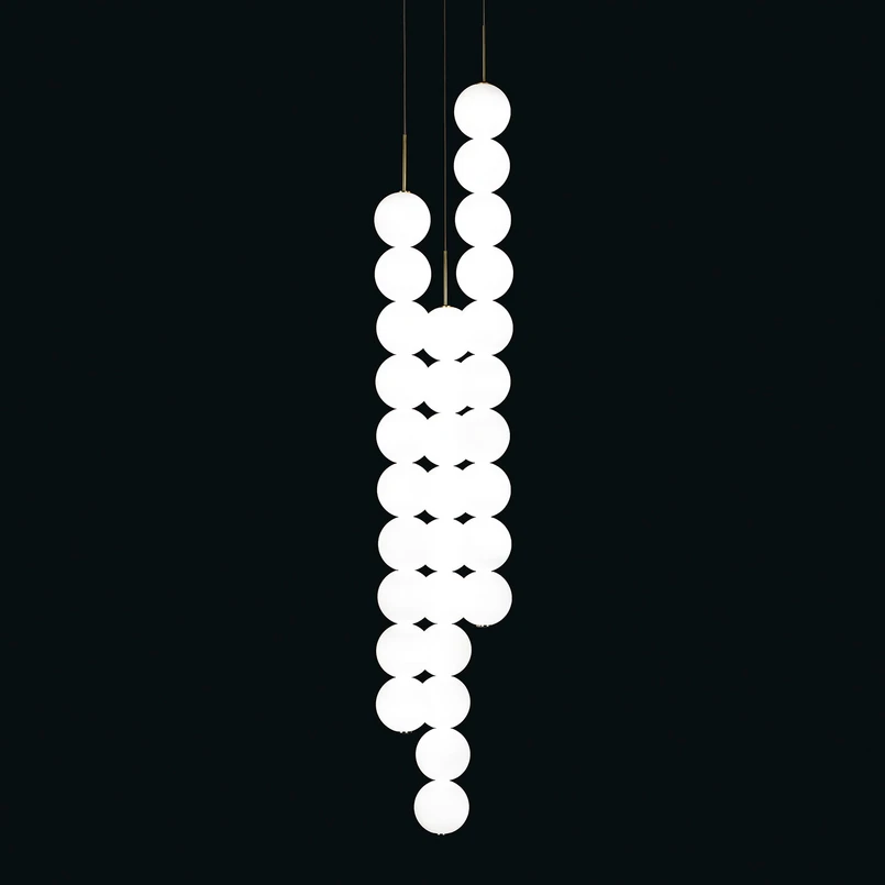 Des lignes claires pour la suspension LED Abacus en verre soufflé à la bouche L'entreprise Terzani est profondément marquée par l'artisanat italien, qui se reflète dans chaque luminaire. Ils allient le travail traditionnel des matériaux à une interprétation moderne de la lumière et des concepts d'éclairage. La suspension LED Abacus est elle aussi composée de verre opale traditionnellement soufflé à la bouche. Le travail manuel fait de chaque luminaire une pièce unique. Le luminaire Abacus s'inspire des règles à calcul, dont le design épuré est synonyme de pureté et de fonctionnalité. Ainsi, ce luminaire se caractérise par des lignes droites et une conception sans fioritures. Les boules de verre blanches sont fixées à trois suspensions individuelles, placées à différentes hauteurs. Le design épuré s'intègre sans problème dans un environnement moderne.