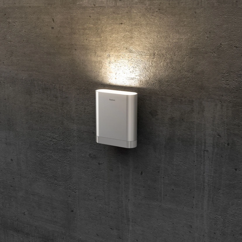 Pour utiliser efficacement cette source de lumière, un détecteur de mouvement PIR est installé, qui couvre une portée allant jusqu'à 10 mètres avec un angle de détection de 180°. L'éclairage est contrôlé en fonction de la présence et de la luminosité. Si nécessaire, TheLeda peut également être mis en réseau avec d'autres luminaires par radio. Une télécommande (TheSenda B) est disponible via les accessoires avec les fonctions teach-in, test de marche, interrupteur crépusculaire, lumière d'orientation graduable et interruption nocturne auto-calculatrice. Ces fonctions peuvent également être utilisées via l'App theSenda Plug.