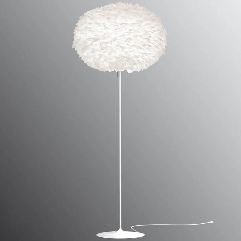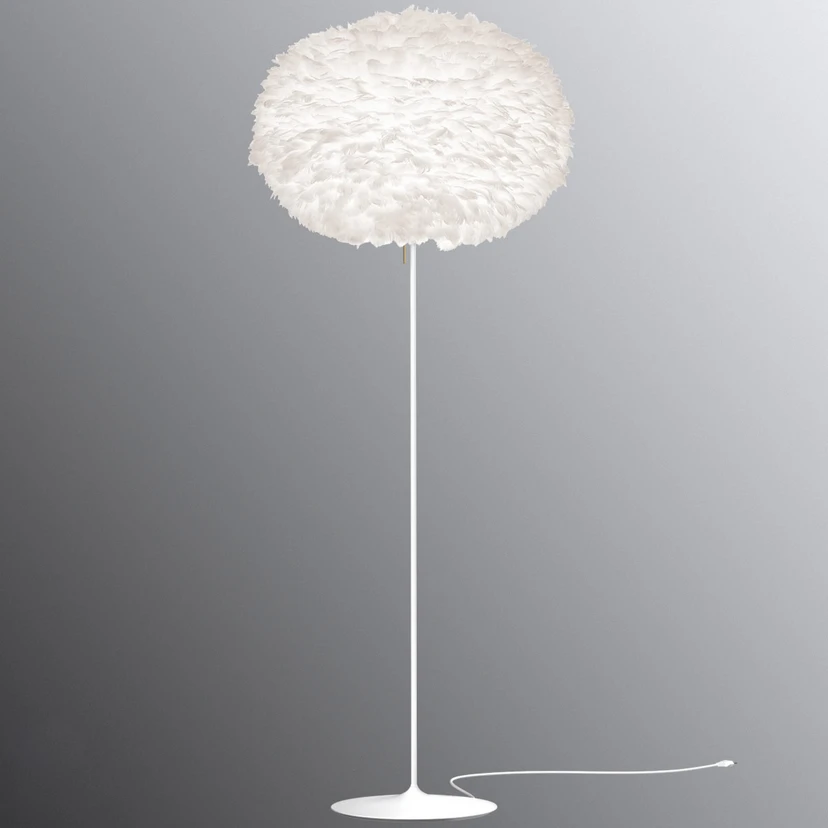 Le naturel est le maître mot du lampadaire Eos X-large qui, grâce à sa couleur blanche neutre, s'accorde avec de nombreuses couleurs et styles d'aménagement. Environ 6000 plumes d'oie blanches - collées sur un fond en papier - forment cet abat-jour inhabituel. La nature de l'abat-jour conçu par Søren Ravn Christensen crée une ambiance lumineuse très agréable et douce, qui assure une atmosphère confortable dans la pièce.