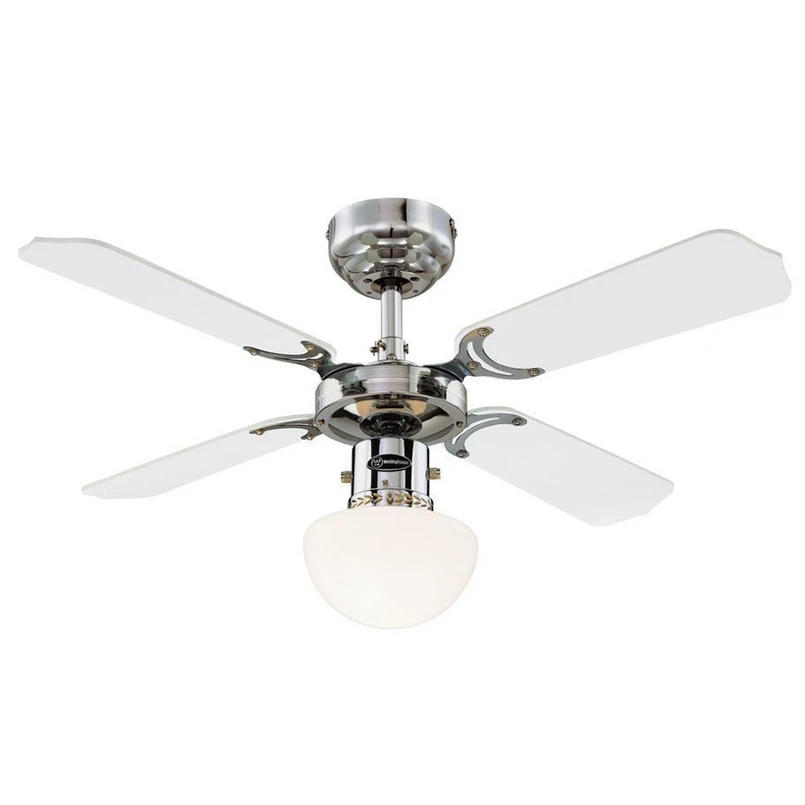 Des pales blanches et noires ornent le ventilateur de plafond Portland Ambiance - Ø 90 cm