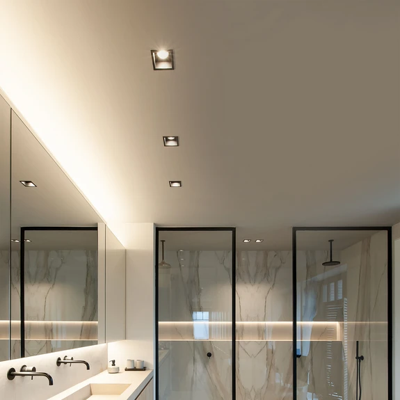 Le downlight LED Plano 2.0, d'un noir élégant, séduit par son design moderne et sa finition haut de gamme en aluminium moulé sous pression. Avec une plage de pivotement de 30° et une rotativité de 355°, il permet un réglage précis des deux sources lumineuses intégrées et donc un éclairage ciblé de la zone souhaitée. Le downlight diffuse une lumière blanche chaude et peut également être à intensité variable grâce à un variateur à coupure de phase ascendante externe.